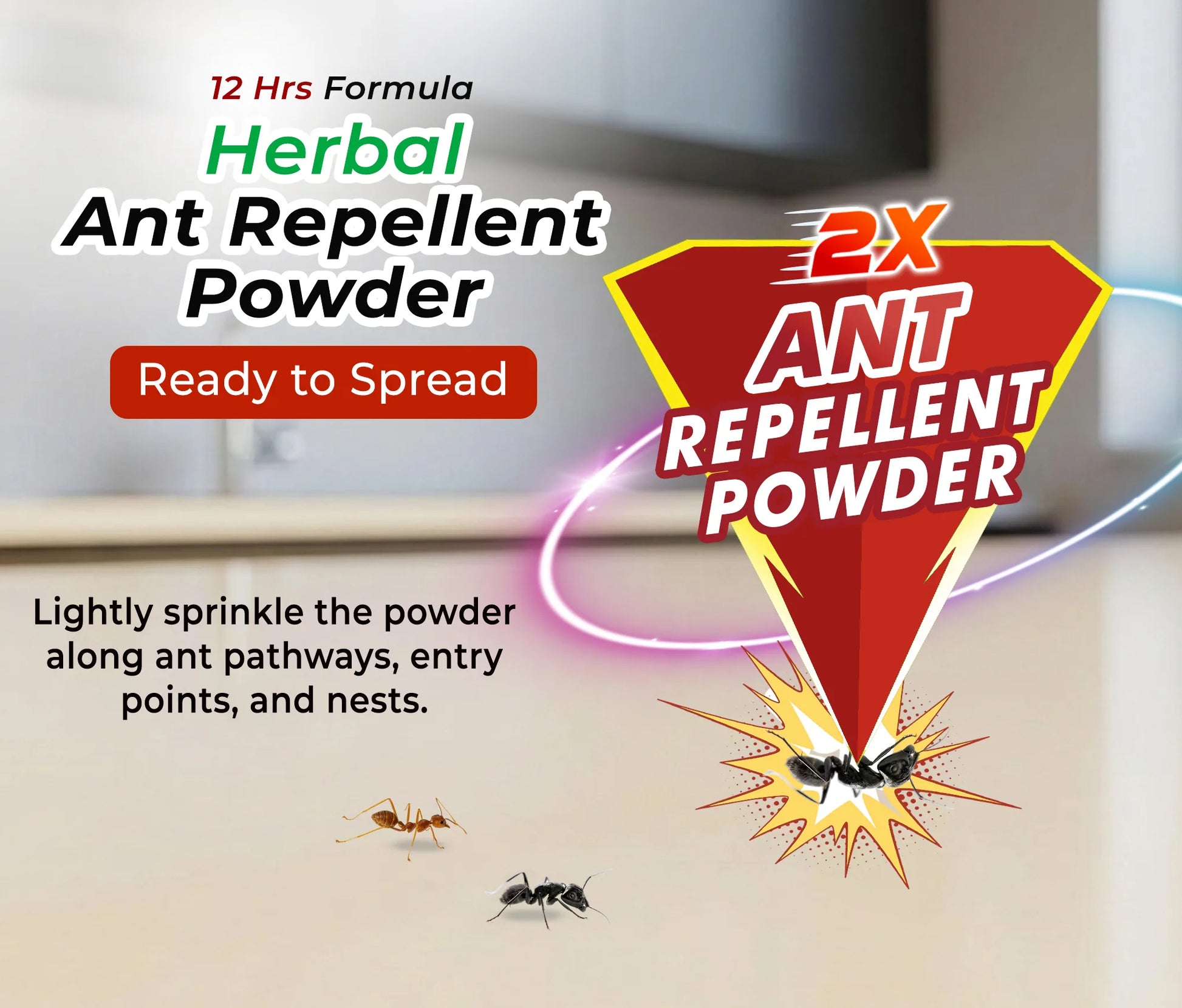 With its 12-hour long-lasting herbal formula, this powder creates an invisible barrier ants avoid, helping you maintain a clean, ant-free environment.
